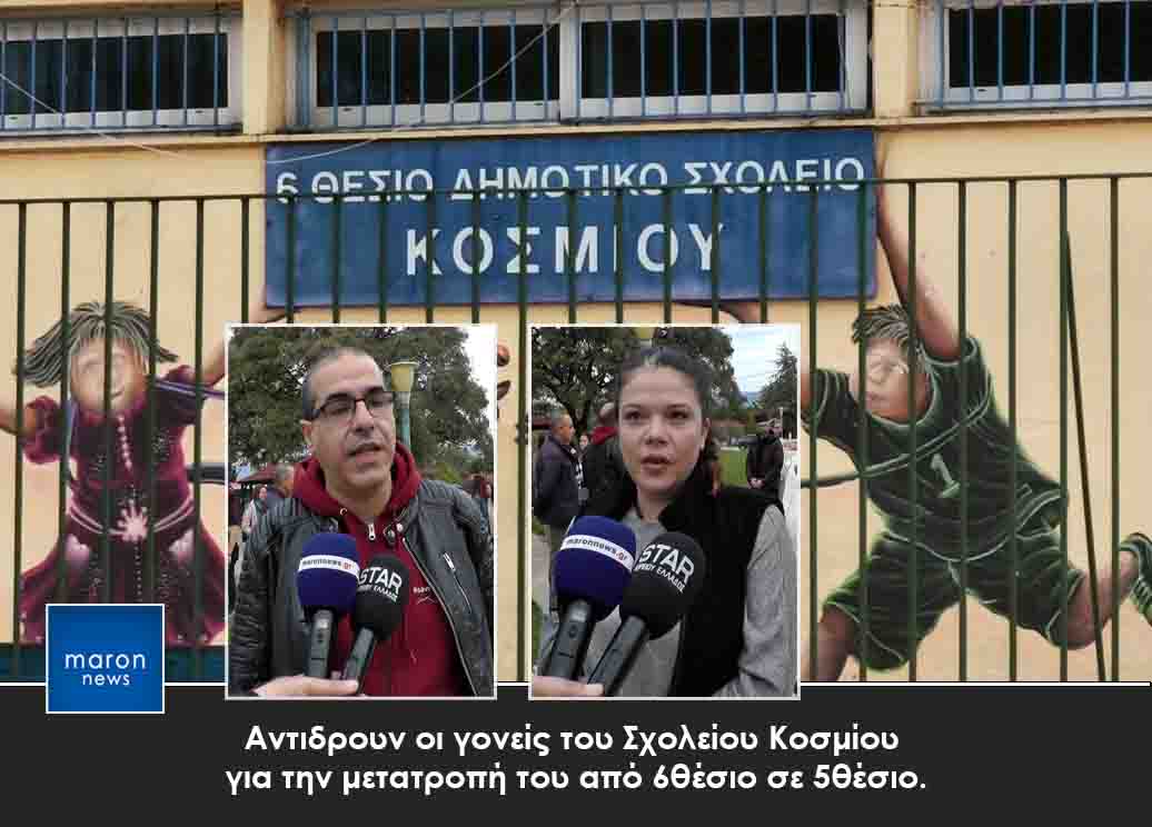 Με επιστολή προς το υπουργείο Παιδείας διαμαρτύρονται οι γονείς των μαθητών του δημοτικού σχολείου Κοσμίου για την μετατροπή του από 6θέσιο σε 5θεσιο με την σύμπτυξη της 1ης και 2ας δημοτικού.