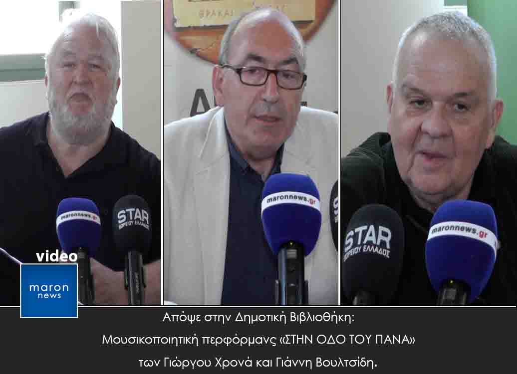 Ο Δήµος Κοµοτηνής, η Αντιδηµαρχία Πολιτισµού και Νέας Γενιάς, ο Μικρός Διάκοσµος, Κέντρο Πολιτισµού, Περιβάλλοντος και Περιηγήσεων του Γιάννη Βουλτσίδη, η Δηµοτική Βιβλιοθήκη Κοµοτηνής, στο πλαίσιο των δράσεων µε την ΚΟΙΝΣΕΠ «Κοµοτηνή εν Δράσει», οι εκδόσεις Οδός Πανός, το Δηµοκρίτειο Βιβλιοπωλείο και ο «Παρατηρητής της Θράκης» παρουσιάζουν την Μουσικοποιητική περφόρµανς «ΣΤΗΝ ΟΔΟ ΤΟΥ ΠΑΝΑ» των Γιώργου Χρονά και Γιάννη Βουλτσίδη και την παρουσίαση του βιβλίου «Το όνοµά µου είναι Γιώργος Χρονάς – Αυτοβιογραφία», την Παρασκευή 23 Μαΐου, στις 18:30, στη Δηµοτική Βιβλιοθήκη Κοµοτηνής.